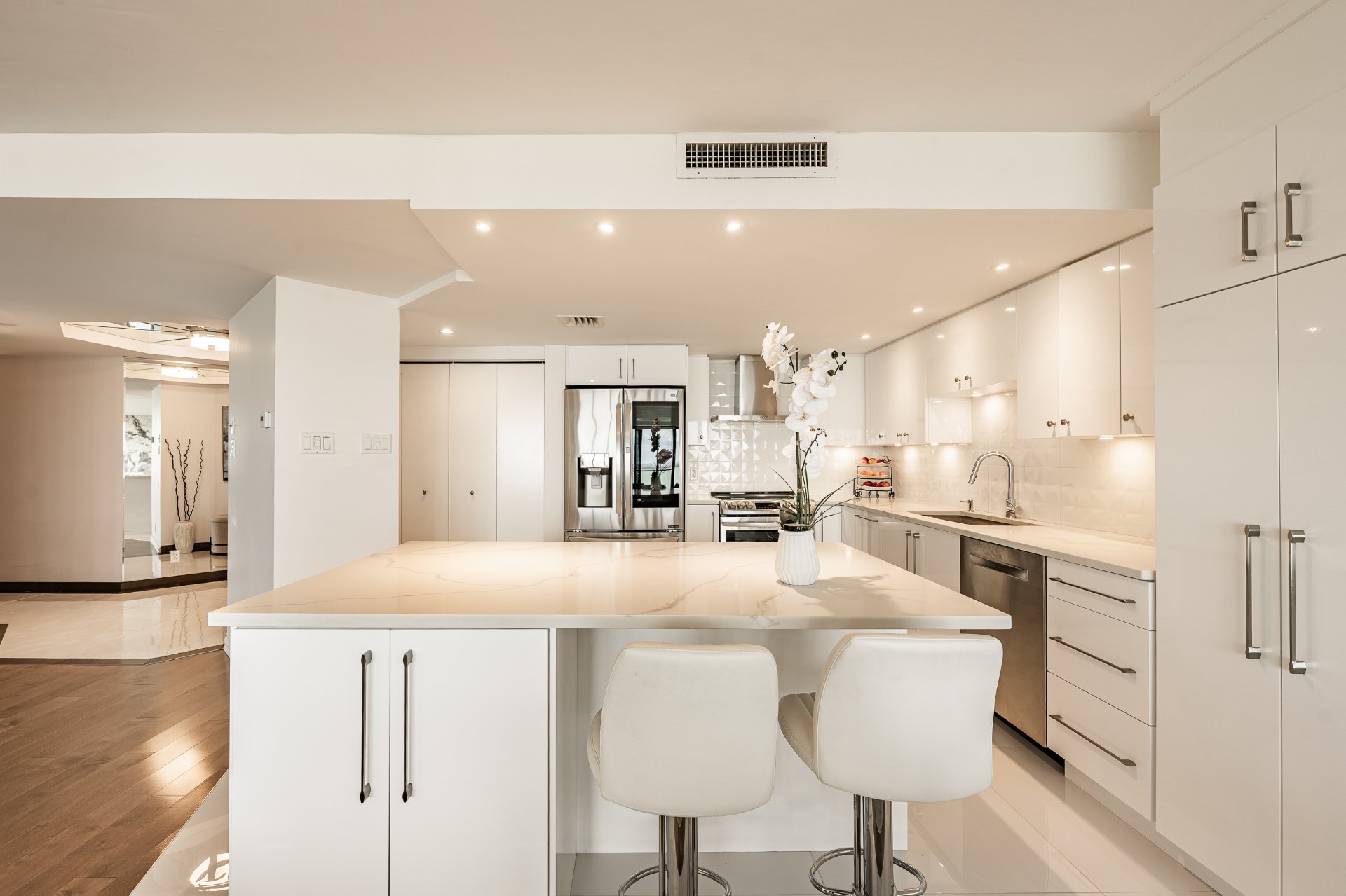 îlot central, comptoirs en quartz et beaucoup d'espace de